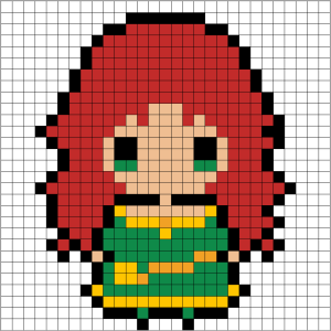 Puedes recrear a Mérida, la valiente y habilidosa arquera con su característico cabello pelirrojo y vestido verde, así como a sus hermanos trillizos.
