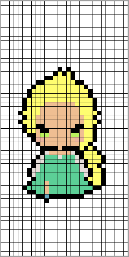 Patrones de Hama Beads de Princesas Disney. Puedes recrear la imagen de Elsa en forma de píxel, utilizando cuentas de colores que se colocan en una base y se fijan con calor para formar el diseño deseado.